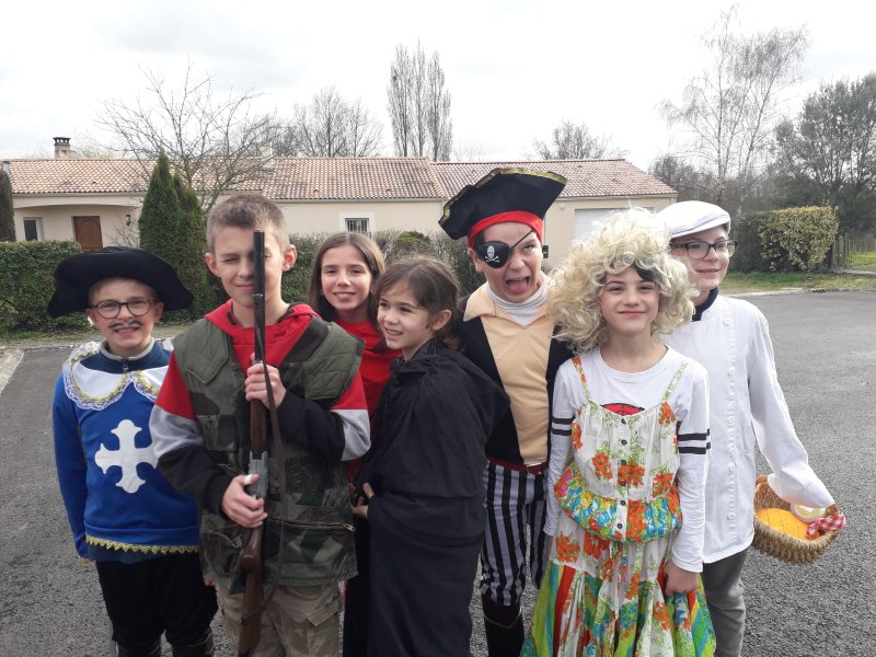 Le vendredi 4 mars était un jour spécial à l’école : nous avons fêté le CARNAVAL ! Le thème retenu était le suivant : les CONTES. Chaque enfant a vraiment bien joué le jeu. Il y avait : des princesses, des chevaliers, des fées, des Petits Chaperons Rouges, des loups, un chasseur, une grand-mère, Boucle d’Or, une sorcière, des pirates, un cuisinier, un fermier, un mousquetaire, des sirènes… BRAVO et MERCI à tous !